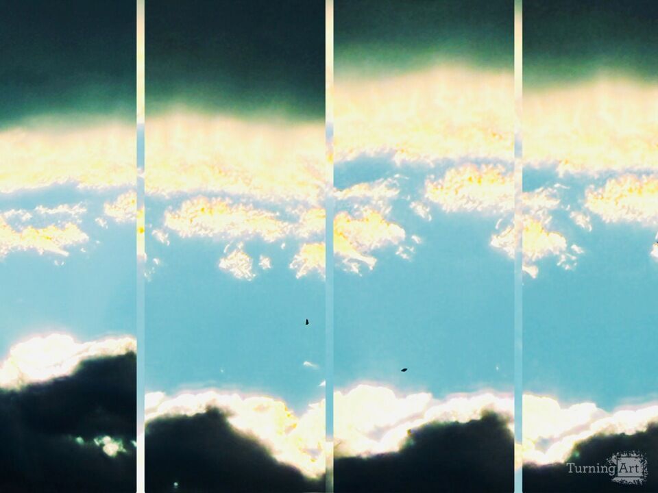 A rippling view in space time for the new year, a glowing horizon with birds in flight, an uplifting mood for the spirit.