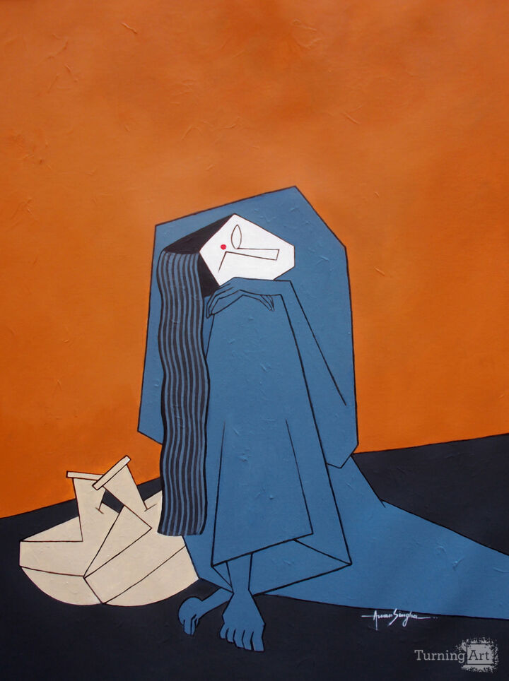 Statement – A conversation between ancestral Indian lineages and synthetic cubism allows me to express my emotions expressively. The use of colors demonstrates my sentiment that works to find hidden lofty things we usually ignore. The color itself becomes a subject that whispers to my senses.