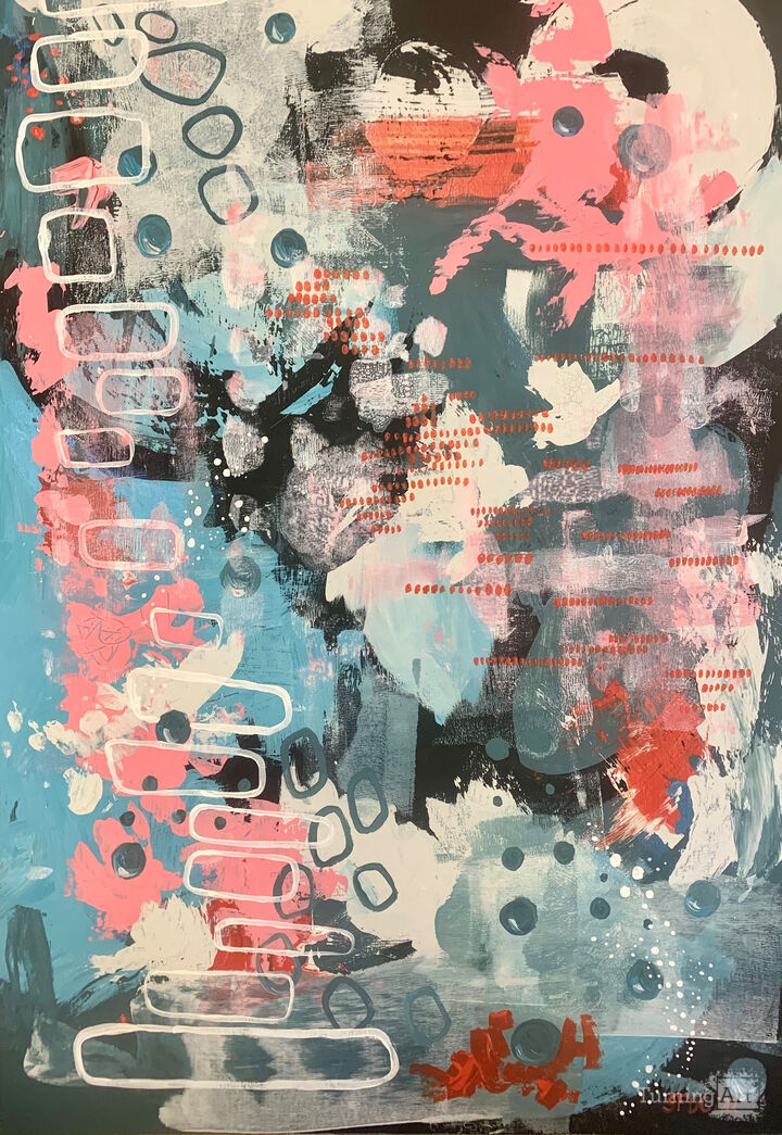 Arctic Mystery captures the enigmatic beauty of the frozen world, blending an ethereal palette of pinks, blacks, greys, and blues to evoke both the icy expanse and the secrets hidden within it. Swirling shades of soft blush and chilly blue dance across the canvas.