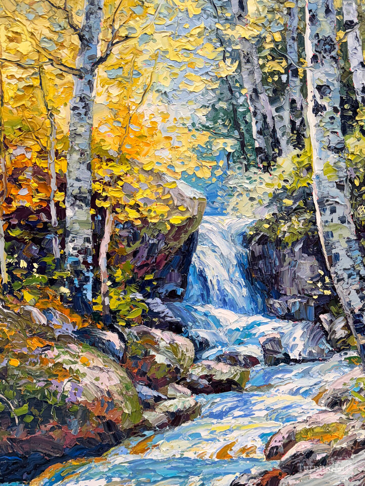 At eighteen, Teare traveled to Northern Idaho, where he built a log cabin at the foot of Moscow Mountain and spent a year painting watercolors by kerosene lamp through the long winters. That summer, while working on trail crews in the Cascade Mountains, he was deeply moved by the Alpine Lakes Wilderness. Surrounded by wild beauty and vast silence, he knew he would one day devote himself fully to landscape painting. Today, Teare lives in Providence, Utah, painting bold, textured vistas with a palette knife—honoring both the structure of printmaking and the wildness of the American West.