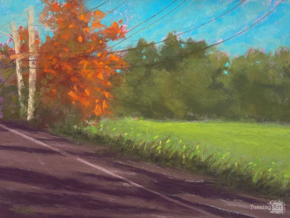 Dina's process looks like this: It always starts with music, which serves to influence what happens on her canvas. At her easel, there is a lot of singing (slightly off key) and there are spontaneous dance parties. Her canvas is a gritty piece of paper, sometimes purchased, sometimes hand-made. With the music on, she uses a photo reference she has taken for inspiration and sketches her composition on her canvas. Sometimes, there isn't a photo reference at all but rather an idea in her head that she works from. She doesn't typically pre-select the colors or values of pastels that she uses, preferring to choose pastels that speak to her in the moment. She often starts with an underpainting, which is the first layer of a painting, using rubbing alcohol to set it permanently on her canvas. She has found that vodka, gin or tequila will work in a pinch when rubbing alcohol isn't available. Sometimes there are happy accidents at the easel and sometimes tragic outcomes but regardless, being at her easel is her favorite place to be.