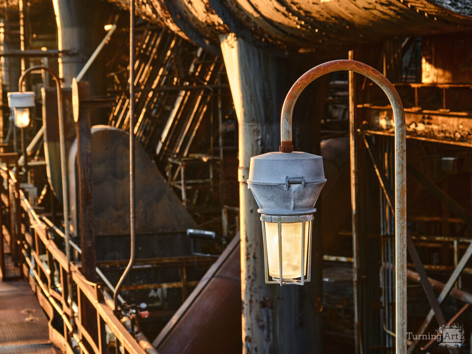 Sunset offers up some beautiful backlighting on the "streetlights" used to light up the Gangways and Catwalks of Bethlehem Steel in Pennsylvania