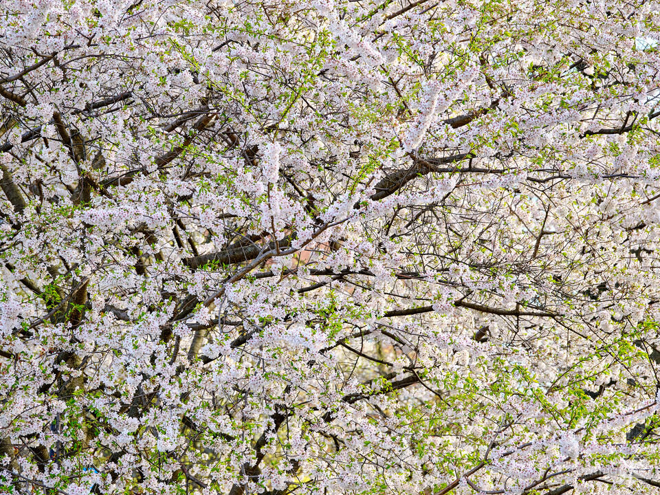 Backlit Springtime Cherry Blossoms