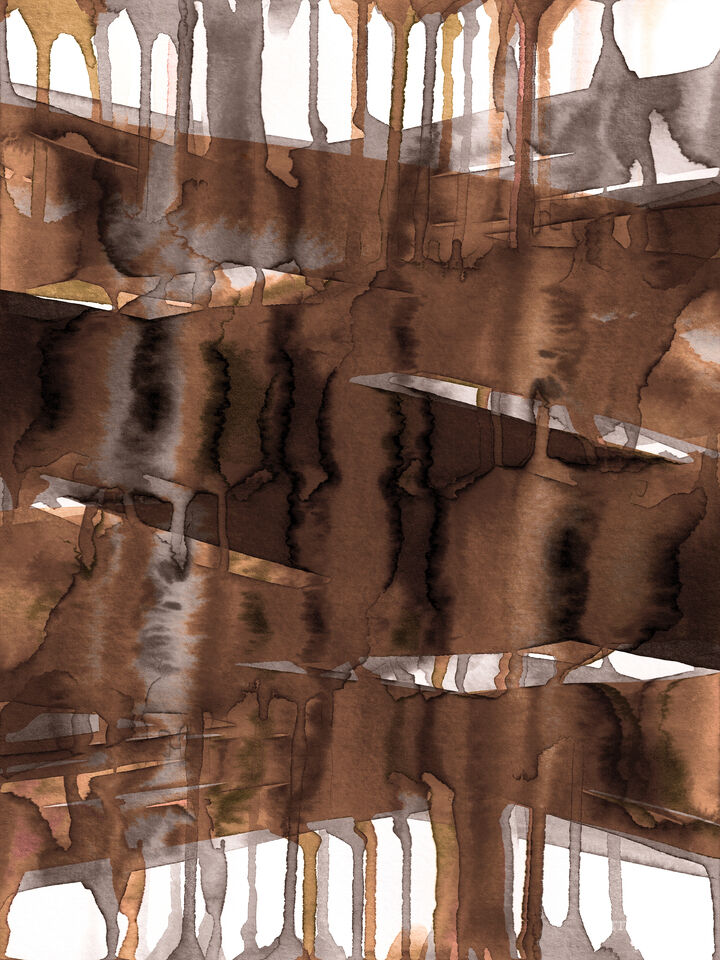 This piece is an elegant, contemporary abstract, created by compiling an original watercolor painting with some digital layering to achieve the final effect. It features both an organic, flowing painterly aesthetic with sharp geometric shapes and lines in a balanced composition. As this piece is abstract, it can be oriented vertically or horizontally, as preferred. And it's available in an array of alternate colorways to suit varied decor preferences and palette requirements.