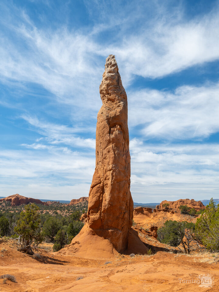 Ballerina Spire stands alone in Kodachrome Basin State Park with the blue sky as a backdrop.