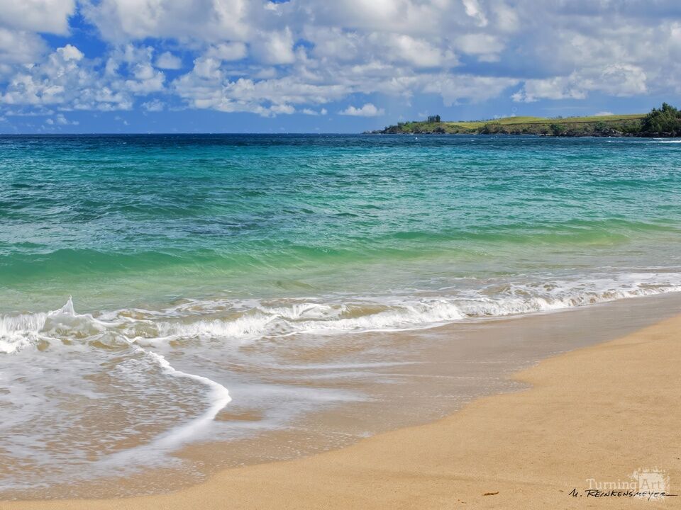 Flemming Beach, a quiet scenic stretch of beach at Maui, Hawaii. Pure colors and cool island winds.