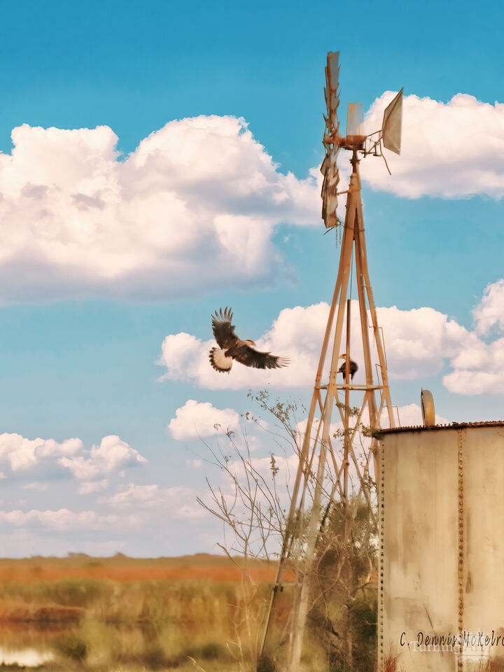 In a near by wildlife refuge are a pair of caracara, or what some prefer to call them Mexican Eagles. This pair were using the old windmill as a perch. It was a nice platform to observe the surrounding area for a meal.