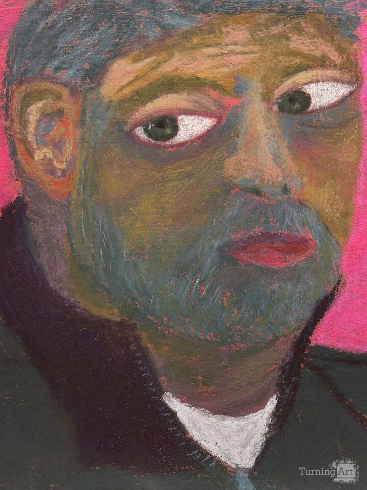Although still exploring German Expressionism, this particular piece has a Van Gogh feel to it. The mark making I used is a bit tighter than the other pieces in the series although they all still work very well together. I love the exploration of color and value in this series and in particular, this lovely pop of pink in this painting