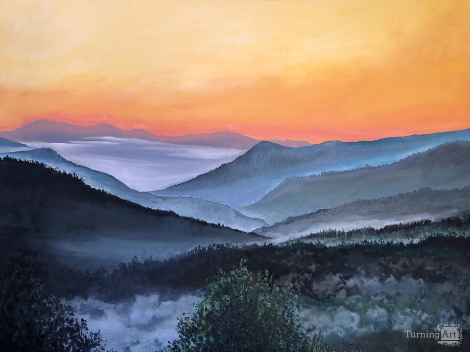 A vivid sunrise over the Blue Ridge Montanans in western North Carolina