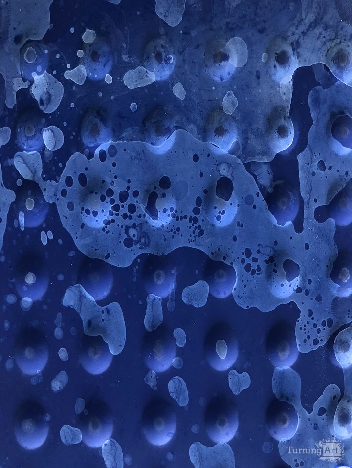 Ever have one of those moments when you see something and it screams, 'take my picture!'? This image was one of the serendipitous moments when the right things happened and the camera was at hand. The deep blue of the textured surface was mottled with the white and the light was bringing out the depth and flattening it all at once. It evokes a stillness as in, a moment in time caught when everything stops. And it shows a moment when nothing will be this way again and you caught the vision at just the right time.