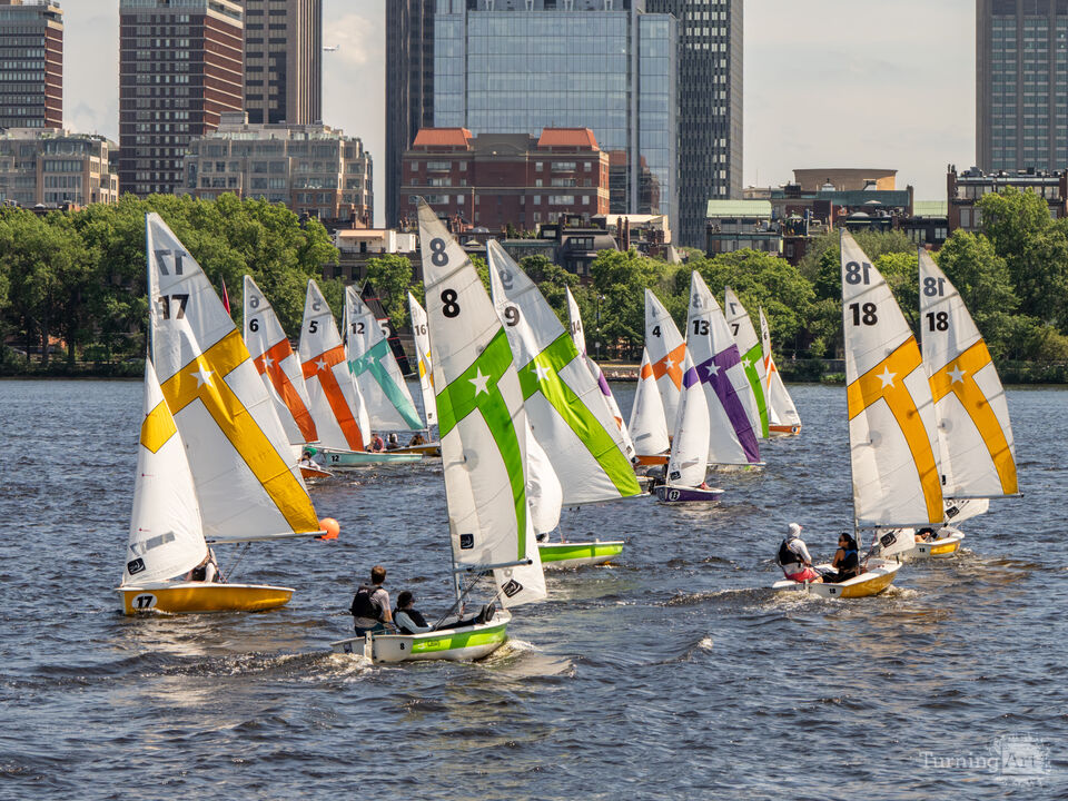 Boston's Charles River Basin is the primary location for university sailboat races and regattas. I spend hours every spring and summer, sitting on the Cambridge side of the river, waiting for interesting sailboat groupings against the Back Bay and Beacon Hill skylines.