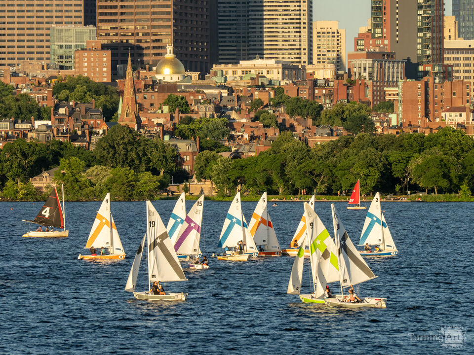 Boston's Charles River Basin is the primary location for university sailboat races and regattas. I spend hours every spring and summer, sitting on the Cambridge side of the river, waiting for interesting sailboat groupings against the Back Bay and Beacon Hill skylines.