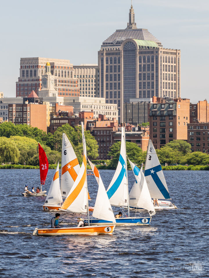 Boston's Charles River Basin is the primary location for university sailboat races and regattas. I spend hours every spring and summer, sitting on the Cambridge side of the river, waiting for interesting sailboat groupings against the Back Bay and Beacon Hill skylines.