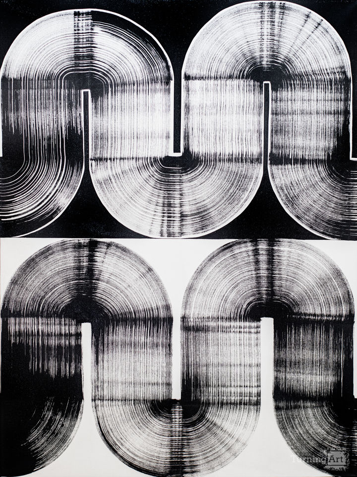 Emon employs a restricted palette that stretches the limits of her medium, and acts as a challenge towards creating complexity. She uses bold contrast and repetition to elicit an immediate response from viewers, while a closer inspection reveals the highly skilled technique, nuance and detail that Emon has cultivated. Her work has become increasingly three dimensional as she’s reflected on the emotional impact of work that changes the viewer’s relationship to space.