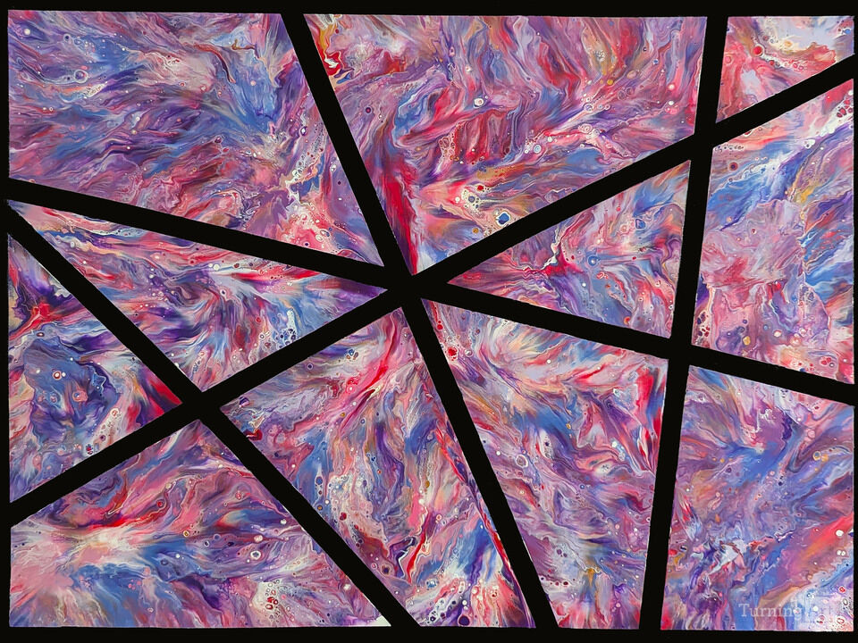 Soft magentas, violets, red, and pink undertones flow together in a mosaic of movement and structure. Broken but Beautiful captures the idea of strength through contrast—the organic fluidity of color meeting sharp geometric lines. The result is both modern and uplifting, evoking balance, renewal, and harmony within chaos.