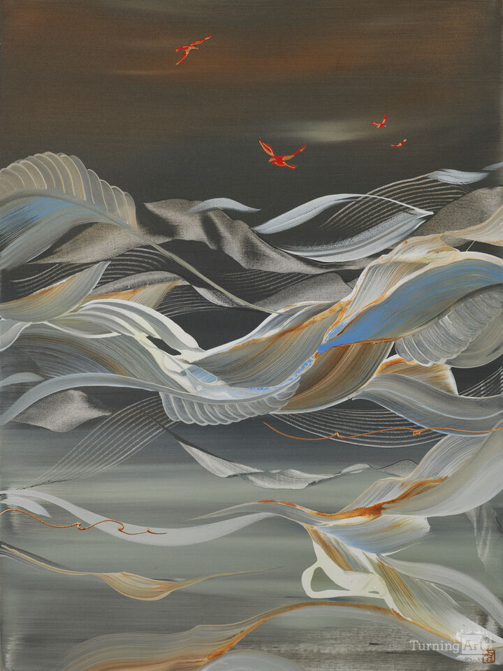 “Nature reimagined in motion: Lim’s poetic abstractions of flight and bloom.”
