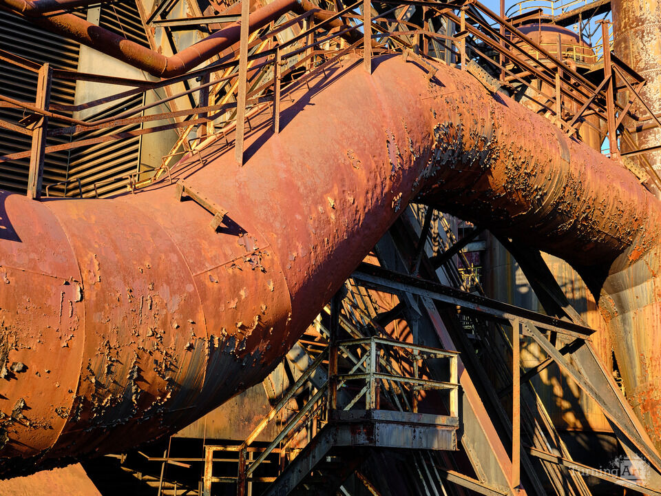 Catwalks and Gangways in the Bethlehem Steelworks glow in the sunset
