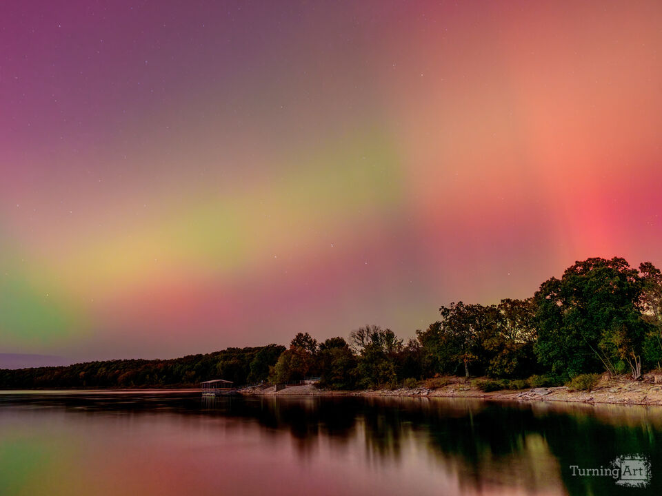 I captured another unforgettable view of the Aurora Borealis glowing above Fellows Lake, a sight I never imagined witnessing in Missouri. Silky water on the lake mirrored streaks of pink, red, green, and violet as the lights slowly shifted across the night sky. This moment took place during the powerful geomagnetic storm on October 10, 2024, when auroras pushed far south into the central United States. Standing along the quiet shoreline in Springfield, watching the sky come alive, felt surreal and humbling, one of those rare moments where time seems to pause and nature puts on a show you’ll never forget.