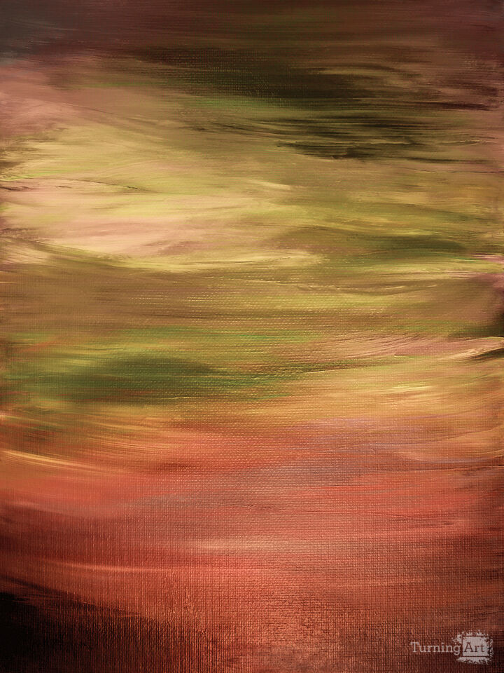 This piece is a bold abstract with an organic sense of flow throughout. It captures a richly colored ombre gradation, with painterly brushstrokes and movement to keep the eye moving. As an artist based in the Pacific Northwest, I take great inspiration from the awe-inspiring beauty of Nature – In this case, I painted my impressions of the constant ebb and flow of the ocean and beautiful coastal sunsets. As it's abstracted, this painting can be oriented vertically or horizontally, as preferred. And it's available in an array of alternate colorways to suit varied palettes and decor requirements.