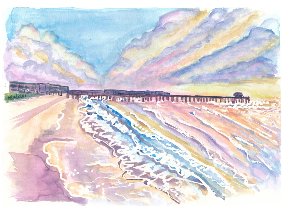 A serene Cocoa Beach Pier painting capturing the relaxed coastal atmosphere of Florida’s Space Coast. Soft ocean waves, warm light, and the iconic pier create a timeless beach scene perfect for coastal, nautical, or beach house decor.