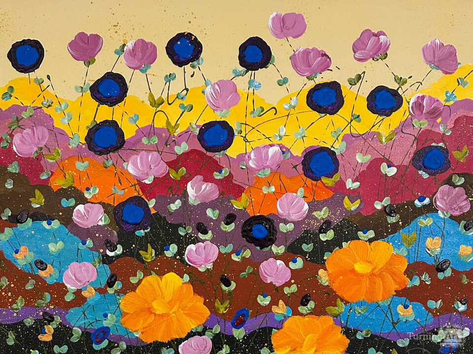 "Color Me Amazing" is a vibrant acrylic painting where abstract forms meet impressionistic flair. The artist's energy comes alive through a dance of radiant colors on canvas, celebrating the wild and untamed spirit of nature's bloom.