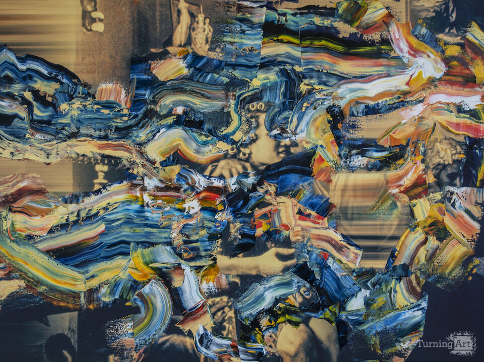 Work from my "Composition in Color" series are oil paintings on top of digitally printed color slides of older photographs I've come across at my job from the archives of retired art professors. Before printing them large on canvas, I initially alter some of their colors and add brushstroke textures to them digitally. Then I print and stretch them so that I can spread oil paint over them with a palette knife. The paint application responds to the forms and color of the photograph as I build out a new composition with it. It's intuitive and fast-paced, and the transformation is unpredictable yet remains grounded. These photographs were once selected and presented to students to teach them something related to their studies in art. Now I hope they generate a notion of the sublime within all of our own psyches.