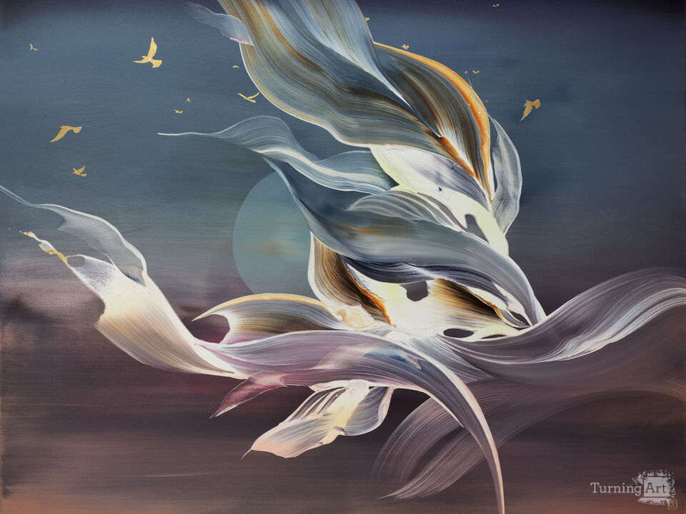 “Nature reimagined in motion: Lim’s poetic abstractions of flight and bloom.”