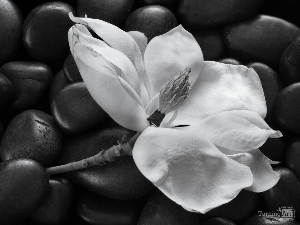 You are the crown of creation, and you have no place to hide. Unless it is under the pure white magnolia blossom on a field of black pebbles, like the beach that is life but not under the sea!