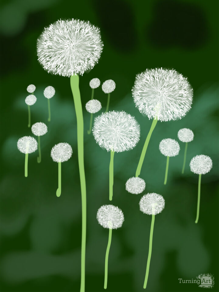 This digital drawing is a part of a series of graphic illustrations of the seasons. A simple subject and color palette create a sense of joy and calm. They were created using the Procreate App for iPad and an Apple Pencil. Dandelion Puffs aims to recreate the sense of childhood wonder when choosing one to pick before blowing its seeds.