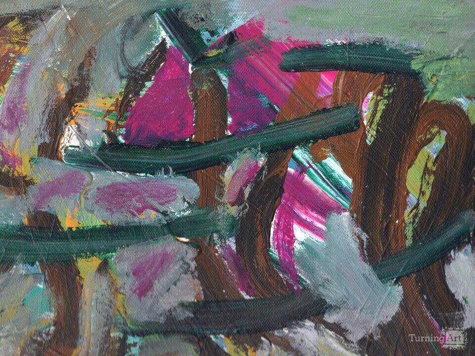 The title "Dark Forest" came to me almost immediately, I'm assuming based on the brown and green colors symbolizing trees, and the magenta and yellow as a sunset beyond the trees
