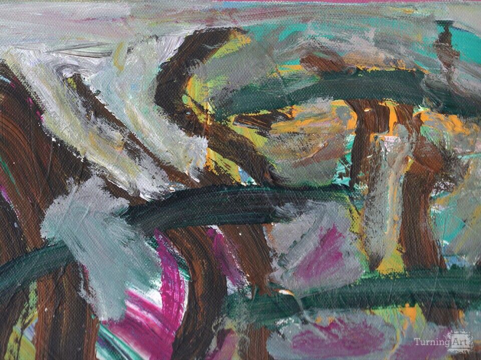 The title "Dark Forest" came to me almost immediately, this section of the piece reminds me of a sunny day in winter, based on the white paint representing snow, and the brown and green colors representing trees