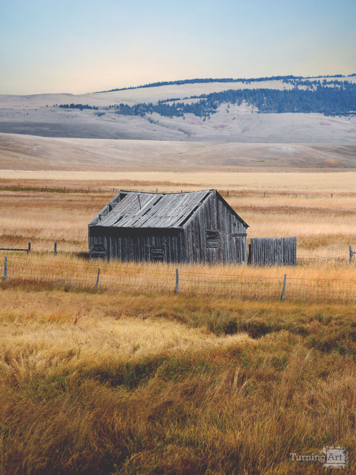 A rustic old barn stands in the wild grass of Northern Montana in the Mission Mountain valley, a place of rugged wilderness and ever-changing skies. I love to capture these simple old barns, full of charm and holding memories of the decades that have passed. Old wood holds the scars of the harsh weather of the plains, from hot summer days to below zero winters, and the weathered gray of an old barn always strikes a chord of nostalgia in me.