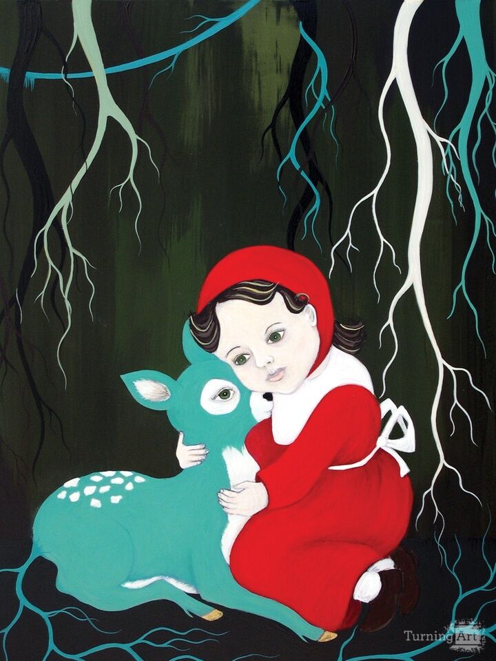 "Deer Girl" was included in my show Tales From The Root Cellar. The collection was inspired by my recollection of my childhood memories, nostalgic collectables, and life experiences. I build stories by carefully choosing familiar elements and reinventing them into magic or mystique.