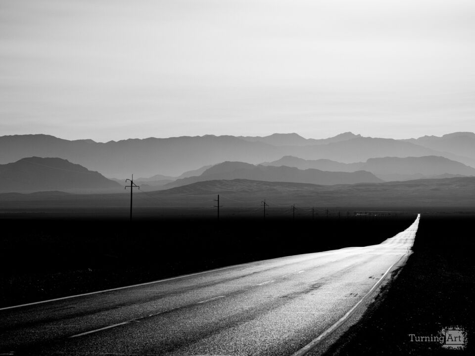 A lonely stretch of road seems to disappear into the distant Nevada mountains. Taken in the morning, I liked the way the rising sun was illuminating the road as if a path that converges on an unknown destination.