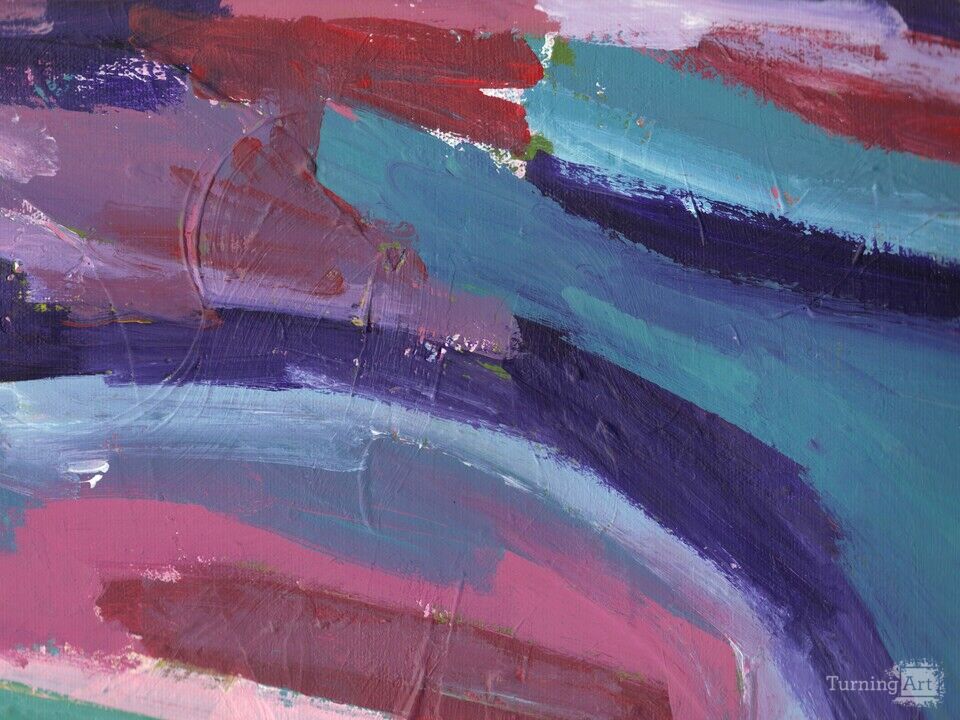Brushstrokes are visible in certain portions (since different types of paint were used) some of which retain brushstrokes, while others dry flat