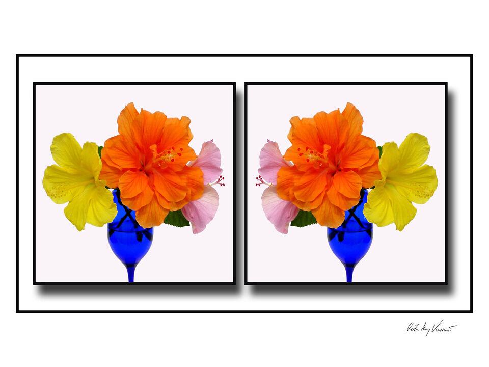 This color photograph is part of a series of floral arrangements. Hibiscus