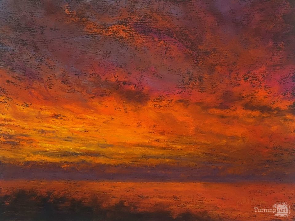 Dina's process looks like this: It always starts with music, which serves to influence what happens on her canvas. At her easel, there is a lot of singing (slightly off key) and there are spontaneous dance parties. Her canvas is a gritty piece of paper, sometimes purchased, sometimes hand-made. With the music on, she uses a photo reference she has taken for inspiration and sketches her composition on her canvas. Sometimes, there isn't a photo reference at all but rather an idea in her head that she works from. She doesn't typically pre-select the colors or values of pastels that she uses, preferring to choose pastels that speak to her in the moment. She often starts with an underpainting, which is the first layer of a painting, using rubbing alcohol to set it permanently on her canvas. She has found that vodka, gin or tequila will work in a pinch when rubbing alcohol isn't available. Sometimes there are happy accidents at the easel and sometimes tragic outcomes but regardless, being at her easel is her favorite place to be.