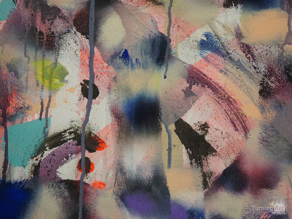 Action has always played a dominant role in the development of Joe's artist's oeuvre and the influence of alternative art forms and mediums can be seen in Joe's willingness to destroy in order to create. He prefers to staple canvas directly to the floor in order to adequately distress his surfaces. Getting paint to do unusual things by throwing, scraping or generally battering the materials is what he strives for. Joe uses liquid paint in squeeze bottles, and he developed a revolutionary new paint application method known as the "Pendulum Painting" which features a swinging bottle of paint on a string.