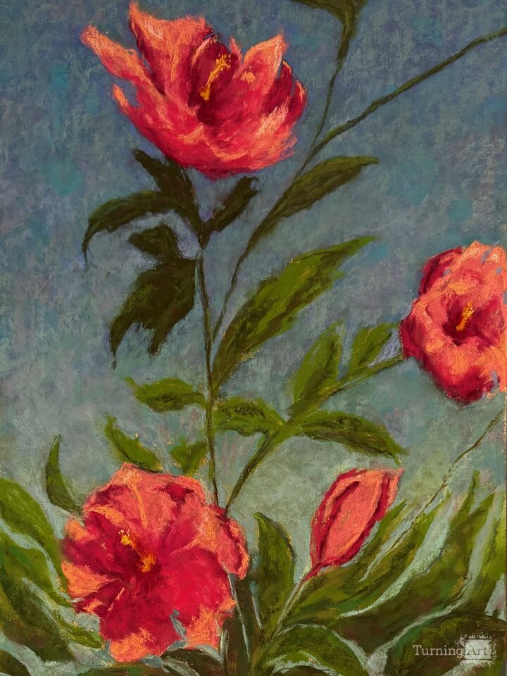 Dina's process looks like this: It always starts with music, which serves to influence what happens on her canvas. At her easel, there is a lot of singing (slightly off key) and there are spontaneous dance parties. Her canvas is a gritty piece of paper, sometimes purchased, sometimes hand-made. With the music on, she uses a photo reference she has taken for inspiration and sketches her composition on her canvas. Sometimes, there isn't a photo reference at all but rather an idea in her head that she works from. She doesn't typically pre-select the colors or values of pastels that she uses, preferring to choose pastels that speak to her in the moment. She often starts with an underpainting, which is the first layer of a painting, using rubbing alcohol to set it permanently on her canvas. She has found that vodka, gin or tequila will work in a pinch when rubbing alcohol isn't available. Sometimes there are happy accidents at the easel and sometimes tragic outcomes but regardless, being at her easel is her favorite place to be.