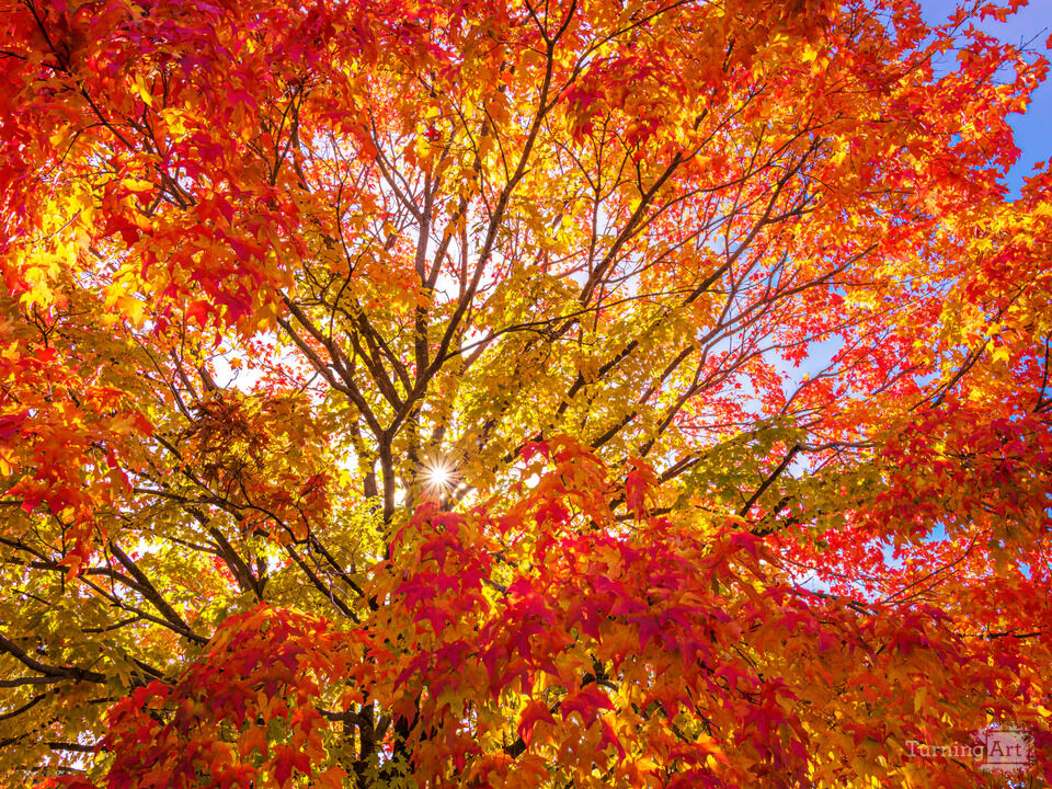 I found this incredible maple tree in the Midwest, tucked away on a quiet Illinois road, and I had to bring out my camera! The entire canopy was glowing with reds, oranges, and yellows stacked in layers like stained glass lit from within. I positioned myself underneath the branches so the sun could sparkle through, and for a moment it felt like standing inside autumn itself.