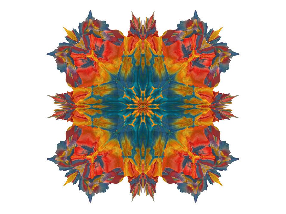 The organic Star Mandala object of the Floralis family, partially stellated in form, with greater striation in depth of color and detail throughout.