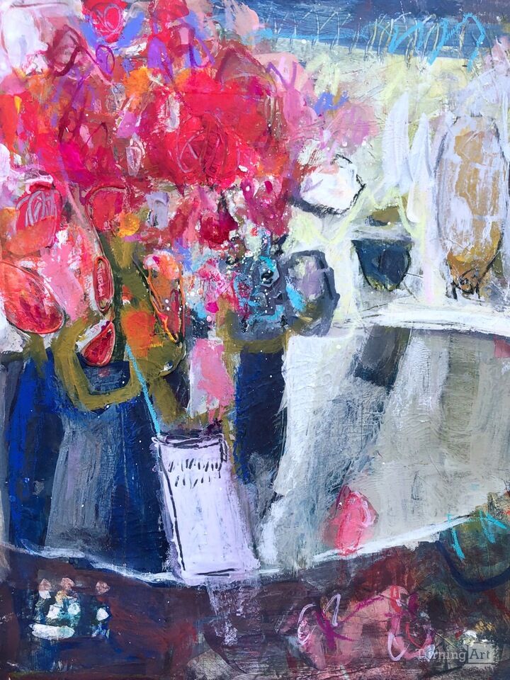 Elizabeth is a versatile artist; she started her practice with realistic floral watercolors, but eventually forayed into the realm of abstract expressionism. There is a strong sense of design and composition in her work, each of which are important elements when creating abstract art. Elizabeth’s paintings have been described as vivid, lively and bold with a complexity of layers. Elizabeth’s paintings are revelations of her innermost thoughts and feelings, often deeply inspired by music.