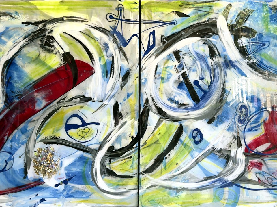Freedom…We feel freedom when we paint! Both are 40×40×1.5. for a total of 80×40×1.5. Finished in 08/2023 It represents love and freedom! Sold together as a pair!