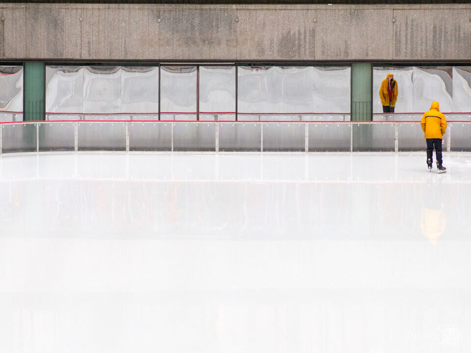 A man skates alone on the ice rink at Rockefeller Center. (New York, US).