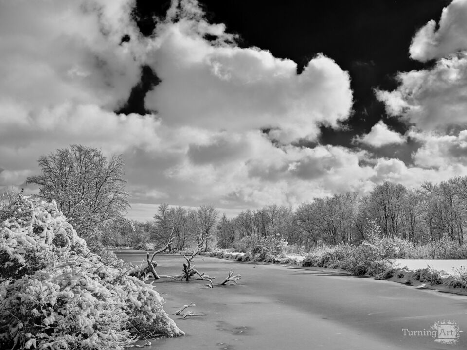 Snowy day on a frozen tributary of the Delaware River in South Jersey
