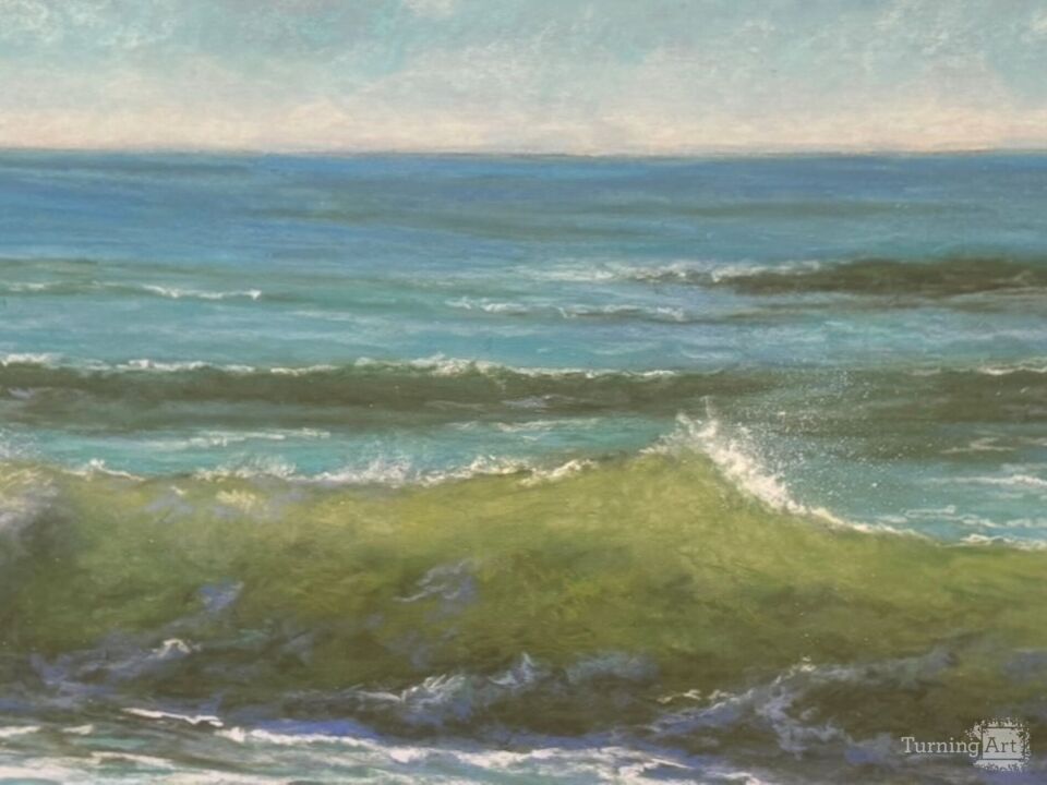 I’ve painted this piece several times from the original photo reference and every time I do, I notice subtleties that I did not ‘see’ the first time around. For this painting, I took creative license and used more of a turquoise palette than I did the first few times I painted it.
