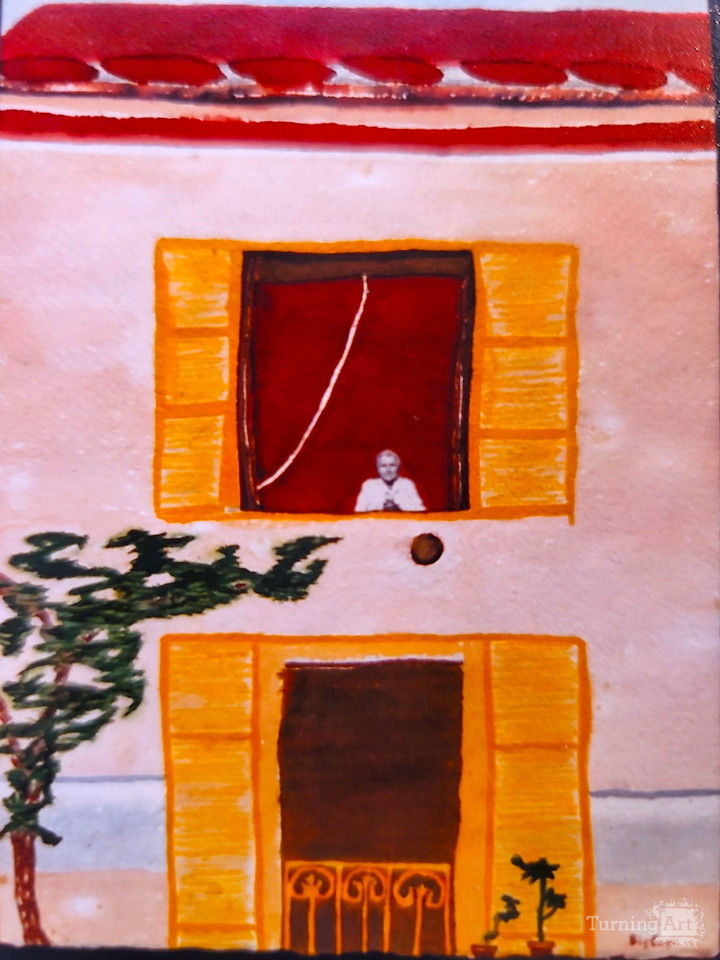 Gertrude Stein rarely left Paris, but once she did, she was very happy in a pink stucco country house. She has just turned away from her writing to gaze out the second-floor window at the green hills and the distant blue sea.