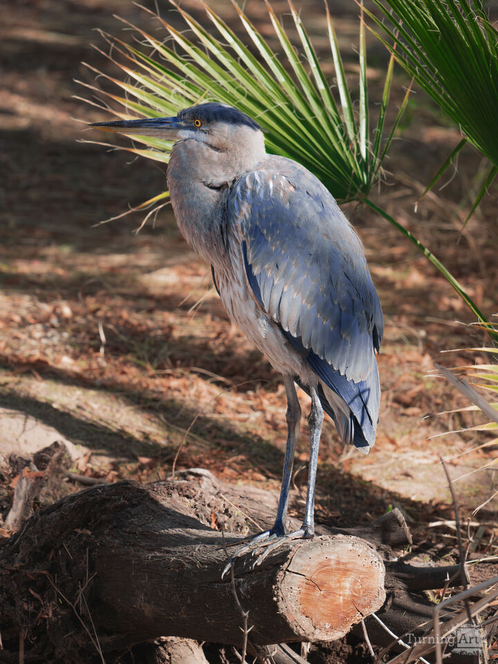 Desert Wildlife has to take advantage of shade in the afternoon. This Great Blue Heron is hanging out under the trees, in a small wetland in