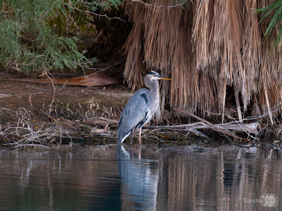 This Heron stood out from the semi-tropical background, with it's gray-blue coloration against the browned palm fronds, and early-morning sunlight bringing out the details and color differences in the feathers.