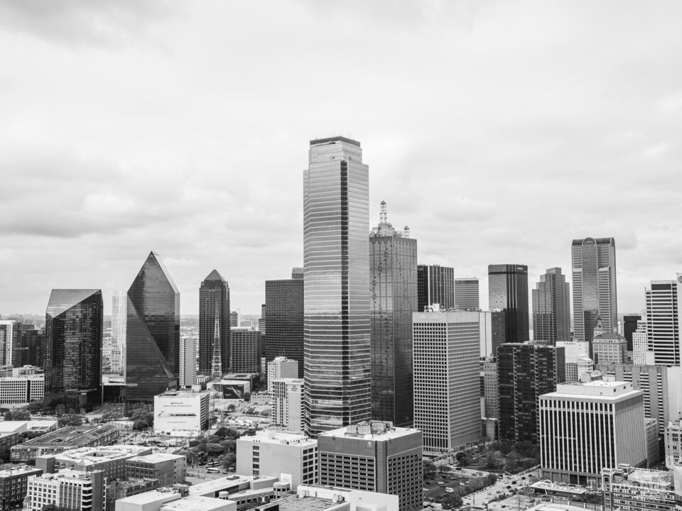 Step into the vibrant world of Dallas, Texas, with this captivating cityscape. The artwork presents a skyline brimming with modern skyscrapers, each structure narrating its own tale against a backdrop of moody, cloudy skies. The sharp angles of the glass and steel buildings contrast beautifully with the softer lines of the city below, creating a visual dialogue that reflects contemporary urban life.
